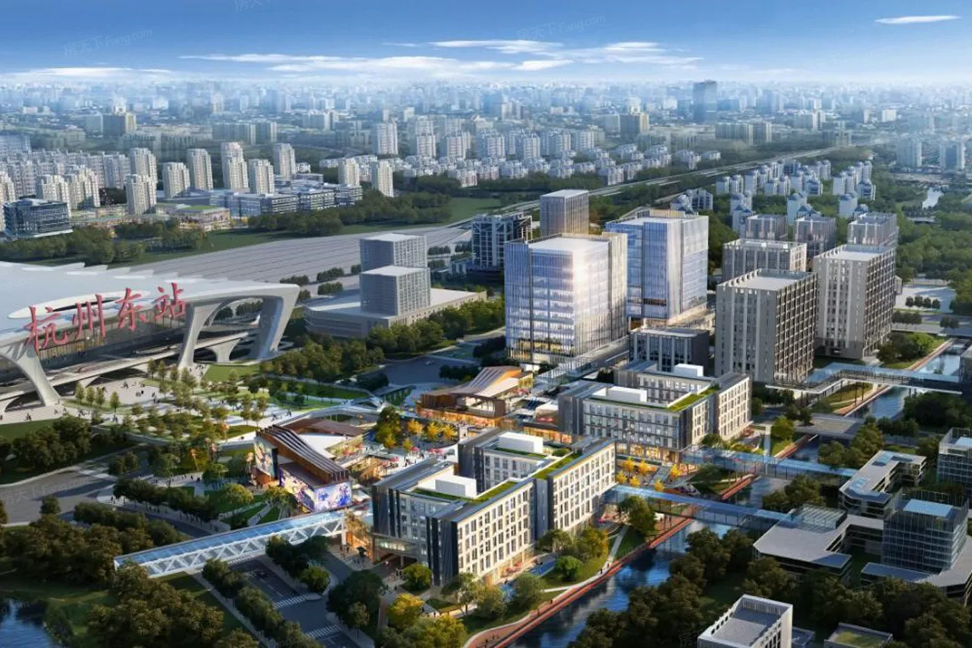 (五)华润置地中央车站广场写字楼房源挂牌量为28套,其中写字楼出租为26套,写字楼出租均价2.8元/㎡·天,环比下跌15.15%,写字楼出售均价19966元/㎡,环比下跌2%,静态投资回报率约为20年。地址为东宁路与鸿泰路交叉口东北角(中央车站广场体验中心),楼盘的总层数为11层,建筑面积237809㎡,占地面积60178㎡,标准层面积90㎡,标准层高4.2m,开发商为华润集团和香港新鸿基地产,物业公司为华润置地(北京)物业管理有限责任公司杭州分公司,物业费3.8元/㎡·月,停车位地下1145个。