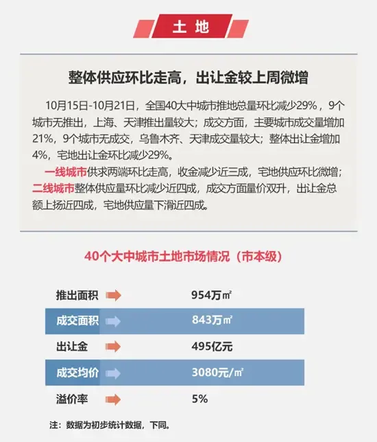 上周楼市环比持平,土地整体供应环比下滑。