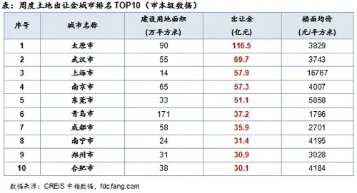 1.出让金:榜单总额增加近两成,太原收金近117亿元居首
