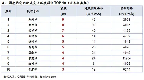 三.周度10:二线城市土地交易活跃,太原多宗宅地入榜