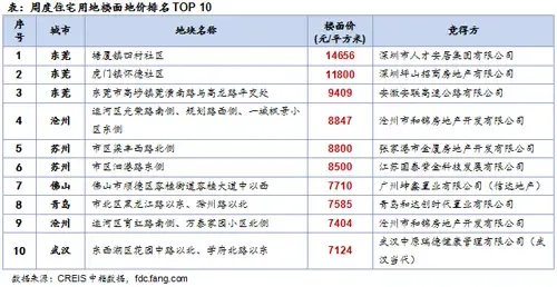 4.住宅用地楼面地价:榜单均价环比降逾四成,东莞宅地包揽榜单前三