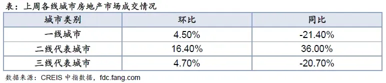 住宅周报:上周楼市成交上行 一二线同环比均上升