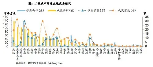 成交方面,代表二线城市量涨价跌,36个城市中29个城市有土地成交。二线代表城市共成交土地308宗,较上周增加138宗,成交面积1208万平方米,较上周增加370万平方米,环比增加44%。其中,武汉成交19宗,共计138万平方米,乌鲁木齐成交32宗,共计105万平方米,为成交量较大的城市;二线城市成交总金额884亿元,较上周增加232亿元。21个二线城市有住宅用地成交,其中乌鲁木齐成交15宗,共计69万平方米,为住宅用地成交量较大的二线城市。