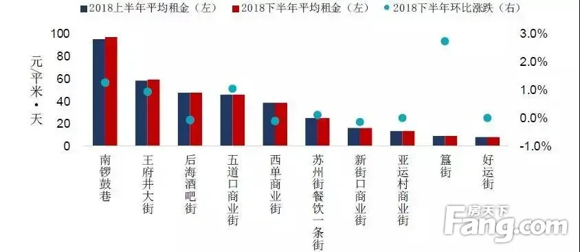 图:2018年北京商业街租金及环比涨跌