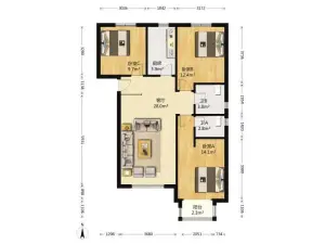 梧桐苑 西长安街沿线 开发商是中铁建 119.63平米 三室两卫 南北双向 中高楼层 周边配套成熟