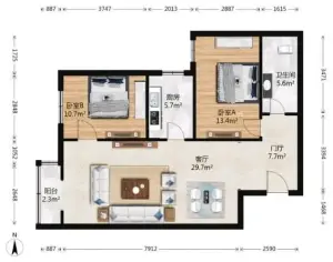 55㎡2室1厅南模式口南里