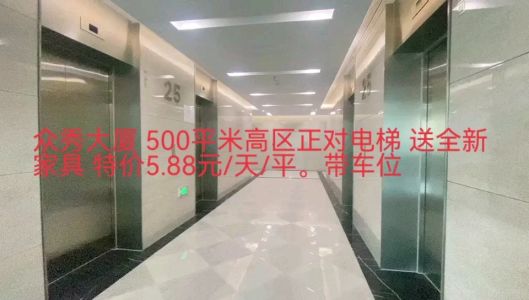 CBD国贸 嘉里中心 众秀大厦 500平 高区正对电梯 特价5.88元/天/平米
