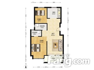 87㎡2室2厅南北合生国际城