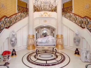 世茂佘山庄园三期 新建盖建筑面积地上1220平米,地下室453平米。 花园独用占地:8亩 装修费用:3000万。 售价:RMB 20000W。