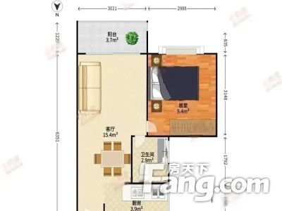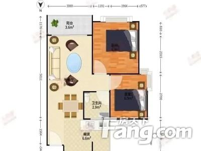 67㎡2室2厅西南皇庭彩园