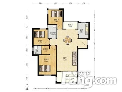 惠风同庆花园蜜糖镇 3室1厅 89.11平