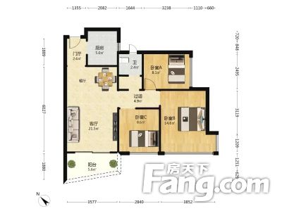 华发世纪城四期 3室2厅 89.07平