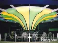 1.底架制作:造型天花骨架局部、风口、喷淋、烟感、筒灯、喇叭口等。 2.订货:根据现场测量后下单。确定尺寸单位、方向、接缝、材质、面积、编号。图纸需与甲方签字确认。 3.龙骨安装:按图纸形状固定龙骨。装置龙骨衔接严密、顺畅,内角位面打磨光滑。中间连接用膨胀螺栓与吊件连接双扣码,按图纸要求定位。如龙骨摆动性大,则加支撑固定。应均匀多找测量点保证平整。 4.天花安装:找出对应的软膜,用风炮或吹风机协调至合理加热展开,距离不宜太近,温度不宜过高,以防损坏软膜。按对角、对点进行安装,扣边条、角位、软膜平整顺畅,焊接缝调整直线。装置过程中一定要注意软膜的维护,不要让软膜碰到周围尖锐、棱角物品,更要注意铲刀对自身的伤害。铲刀顶到扣边缝里后,一定确保刀与缝接触牢固,用力往龙骨槽里拉时更要注意力度的均匀性,不要用力过猛,不然会使铲刀滑出扣边,伤到自己或邻近的软膜。 5.开口: a.灯位:开口灯位则在垫圈内径开小孔,用胶水与软膜、垫圈粘接,完成灯位装置孔,垫圈外径不得大于灯罩外缘直径。 b.喷淋:待软膜安装完毕,找准对点位,将3厘安迪板垫圈与软膜粘接,完成喷淋装置孔,安迪圈外径要小于喷淋饰盖直径。 c.风口、烟感:待软膜安装完毕,找准对点位,将软膜开孔(小于风口、烟感内径口)用胶水与风口、烟感底架安迪板均匀粘连,完成风口装置位。 d.胶水不宜逾越粘接处,否则会影响效果。胶水太多反而会影响粘接效果。 6.安装完毕后,用干净毛巾把软膜天花清洁干净。