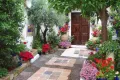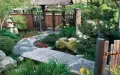 有几个原则:1、首先考虑的就应该是本地植物,好种植好养护。2、搭配的植物在一个庭院内要四季有花。夏季要有香型花卉(驱蚊)。3、落叶植物和常绿植物要间插搭配。4、注意层次和色调,耐阴和喜阳植物的搭配。5、庭院内不适合种太多的大树,不适合种有毒的植物和易生虫的植物。6、以风水上说,最好种植吉祥树种,不种松柏,前不栽杨后不栽柳,正门向面外右边白虎位的植物不要高于左边青龙位的植物(只许青龙高万丈,不许白虎抬头望)十三种庭院吉祥植物:1、 棕榈,又名棕树。在风水上具有生财护财的作用。(常绿。)2、 橘树,即桔树。?桔?与?吉?谐音,象征吉祥。(春香型白花,秋冬果。北方不适合)3、 竹。苏东坡云:?宁可食无肉,不可居无竹。?竹是高雅脱俗的象征,无惧东南西北风,更可以成为家居的风水防护林。 (常绿耐阴耐晒、耐旱耐涝。但竹叶比较难清扫。)4、椿树。《庄子?逍遥游》云:?上古有大椿者,以八千岁为秋。?因此椿树是长寿之兆,后世又以之为父亲的代称,在风水上有护宅及祈寿功用。(树形不算好看,现在用得比较少)5、槐树。槐树木质坚硬,可为绿化树、行道树等,在风水上被认为代表?禄?,古代朝廷种三槐九棘,公卿大夫坐于其下,面对三槐者为三公,因此槐树在众树之中品位最高,镇宅有权威性。槐树为阳性树种,古代其木可为驱邪法器,但现在的人爱认半边字,以为是木鬼不好。(落叶,春香型白花,可食用)6、 桂树。相传月中有桂树,桂花又即木犀,桂枝可入药,功能为驱风邪、调和作用。宋之问词云:?桂子月中落,天香云外飘。?桂花象征着高洁,夏季桂花芳香四溢,是天然的空气清新剂。(南北皆宜,常绿秋香型花,有白花银桂、黄花金桂、红花丹桂三种,耐阴耐嗮,现在庭院用得最多的树种,含贵之意)7、 灵芝。灵芝性温味甘、益精气、强筋骨,有观赏作用,是长寿之兆,自古被视为祥物,鹿口或鹤嘴衔灵芝祝寿,是吉祥图的常见题材。(这个树上都有可能长,就是自己培植太难了,可遇不可求)8、 梅。梅树对土壤的适应性强,花开五瓣,清高富贵,其五片花瓣有?梅开五福?之意,对于家居的福气有提升作用。 (落叶冬花,也是庭院最常用的植物,毕竟冬花植物少。腊梅黄色芳香、红梅白梅姿态优美但不香,绿萼梅美丽珍贵)9、榕树。含?有容乃大,无欲则刚?之意,居者以此自勉有助于提高涵养。(但榕树气根发达,爱干净的和庭院面积小于200㎡的最好不要种植。)10、枣树 。在庭院中植枣树,喻早得贵子,凡事快人一步。(适合北方,不适合南方)11、石榴。含有多子多福的祥兆,很有富贵气息。(南北皆宜、落叶树种,也是很常用的树种,有果石榴和花石榴两大类)12、葡萄。葡萄藤缠藤,象征亲密,自古有葡萄架下七夕相会之说,而夏季在葡萄荫下纳凉,事。 (南北皆宜、落叶藤本,也是非常常用的植物,有三个要点1需搭架子2需阳光充足3每年冬季及时修剪)13、海棠。花开鲜艳,令富贵满堂,而棠棣之华,象征兄弟和睦,其乐融融。(南北皆宜、落叶树种,也是很常用的树种,都是春花,有四大类:垂丝海棠、西府海棠、贴跟海棠、木瓜海棠,)镇宅驱邪植物:柳树(只能种前院)、桃树(不能种门前)、银杏(要种就要种公母一对,且种在一起中间不岔别的树)、香樟(种双数)、红豆杉(喜湿润、怕暴晒)、葫芦(一年生藤本)有毒的植物:夜来香(香味会引起身体不好的人得心脏病)、马樱丹(及五色梅,剧毒)、滴水观音(及海芋,剧毒)春赏:春鹃、蔷薇、银春、连翘、三角梅、观赏桃类、红叶李、月季类、槐类、木春菊、红继木、含笑、