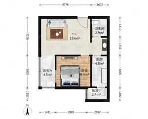 建筑面积: 62.5㎡ 1室1厅