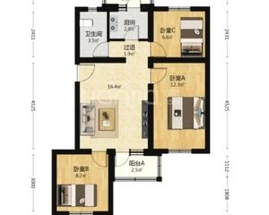 建筑面积: 64.6㎡ 2室1厅