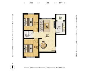 建筑面积: 56.2㎡ 2室1厅