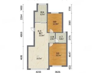 建筑面积: 86.55㎡ 2室1厅