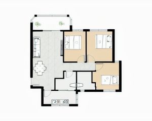 建筑面积: 66.32㎡ 2室1厅