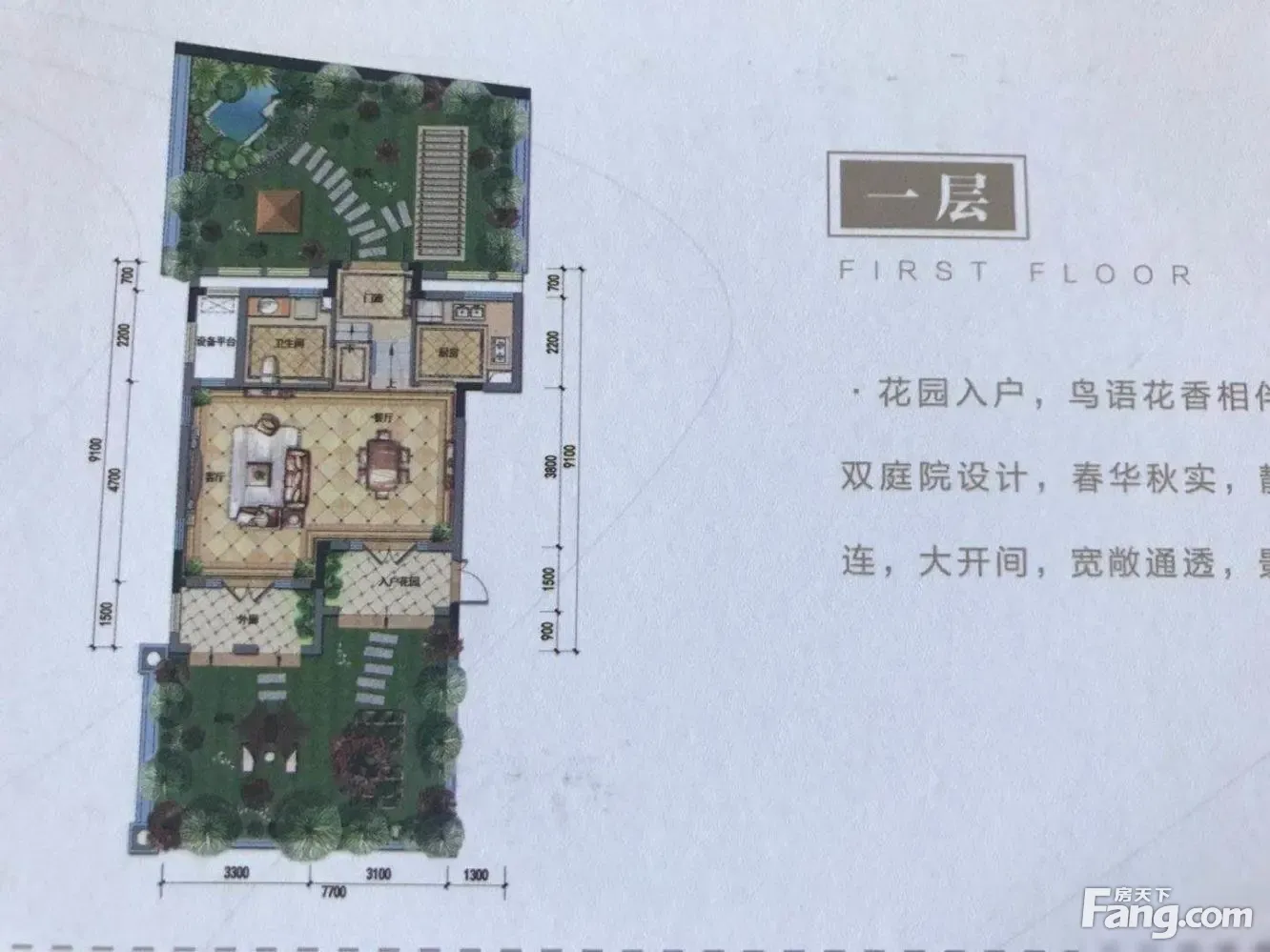 1.房源详情:产证面积117.86?O,花园100?O,地上两层,送露台,带车库。 2.户型介绍:2房2厅2卫,全明卫生间,全景落地窗,采光通透良好,私密性好。 3.装修情况:精装修 4.产权情况:产权清晰,无纠纷,可正常交易。