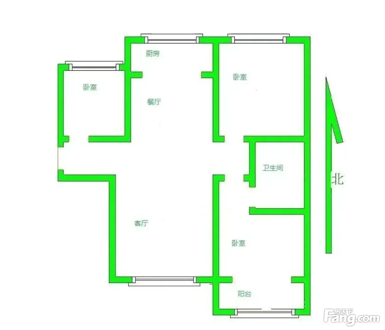 本房源户型图与照片和一致,南北通透,实用小三室