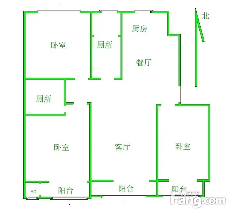 本房源户型图与照片和一致,南北通透,实用小三室