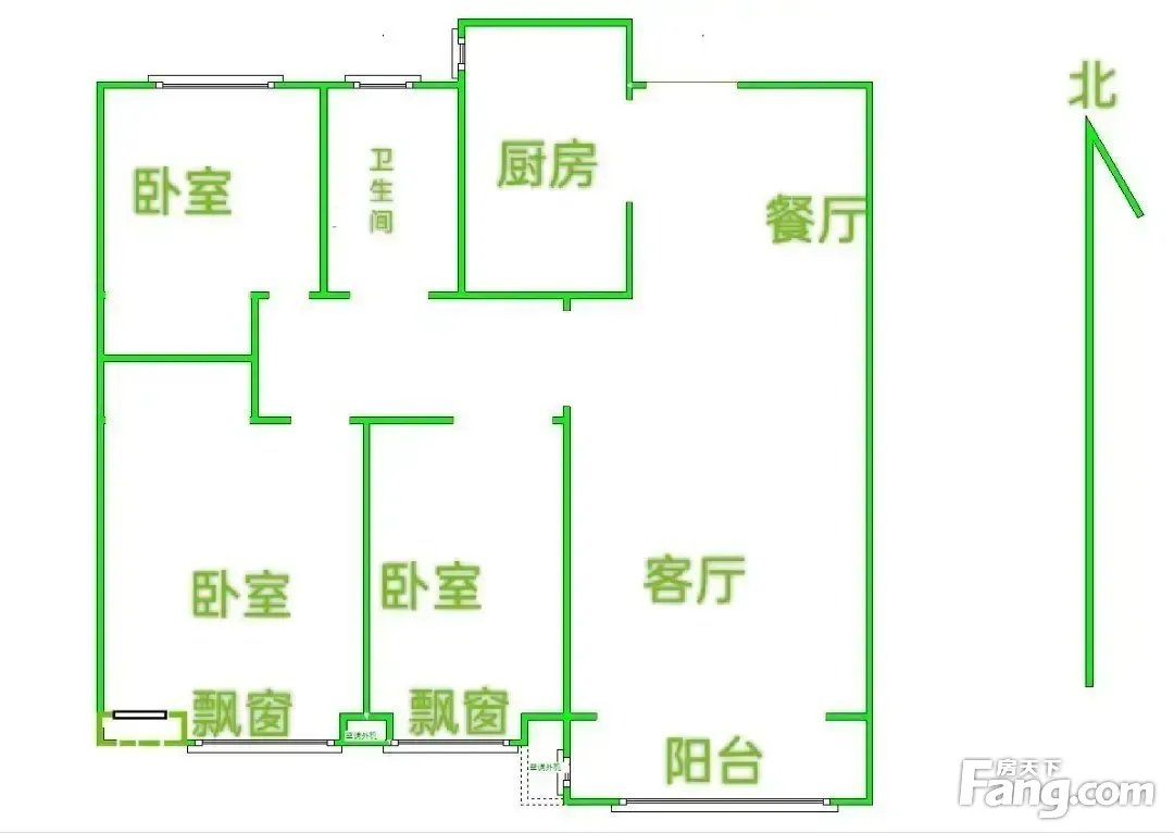 本房源户型图与照片和一致,南北通透,实用小三室