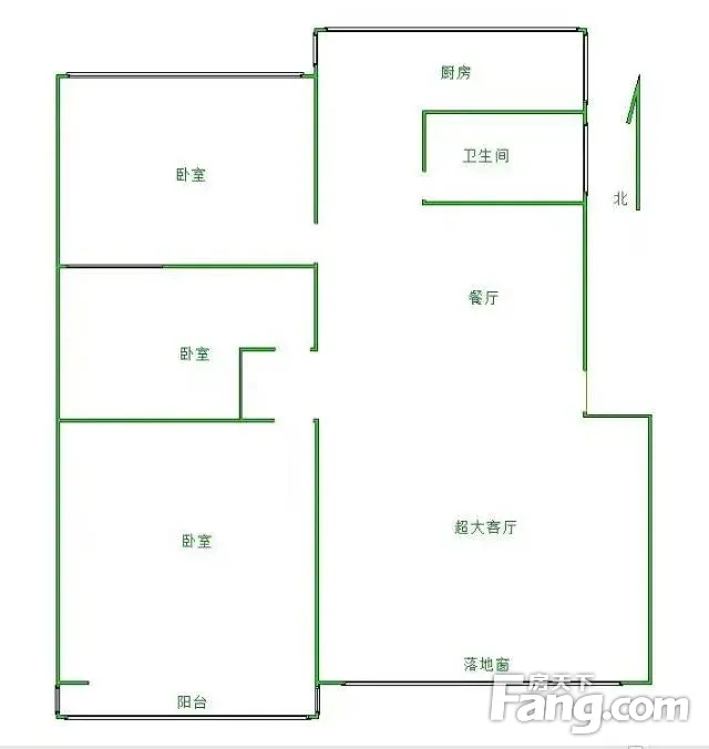 本房源户型图与照片和一致,南北通透,实用小三室