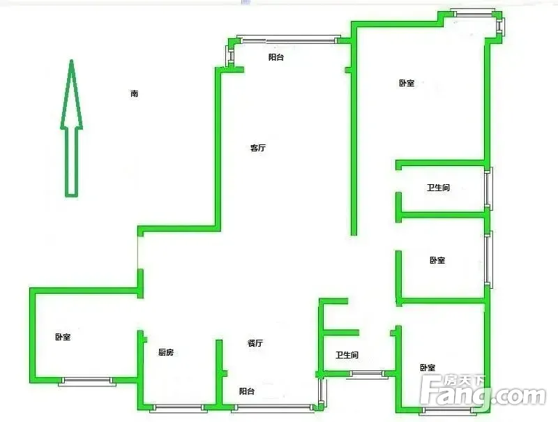 本房源户型图与照片和一致,南北通透,实用小三室