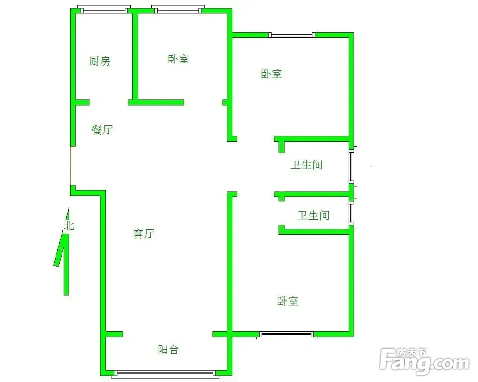 本房源户型图与照片和一致,南北通透,实用小三室