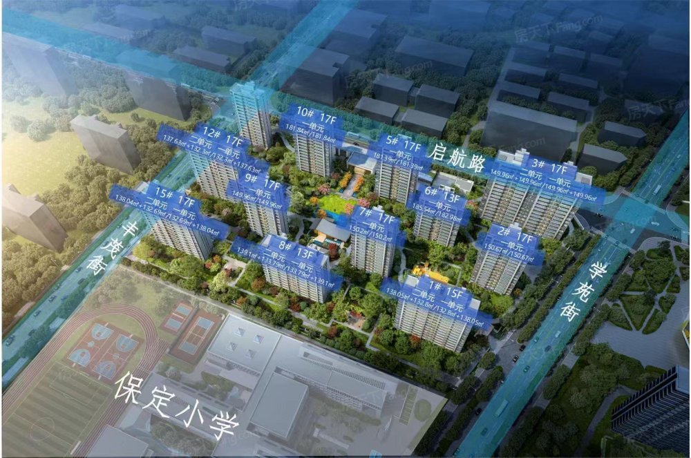 开发商:河北深保投资发展有限公司 项目地址:保定市莲池区东三环深圳园学苑街西、启航路南(保定小学北侧) 总占地面积:约60.8亩 总建筑面积:11.7万㎡ 居住户数:546户 容积率:2.03 绿地率:46.53% 车位配比:1:1.2 ♀非机动车车位配比:1:2 建筑密度:18.5% 建筑风格:现代简约风格 产品形式:12栋全小高层产品,9栋17层、2栋13层、1栋15层 物业:万科物业
