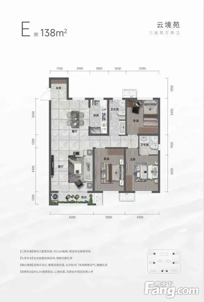 户型齐全,主打南北通透,全明格局,户型方正,采光充足三居