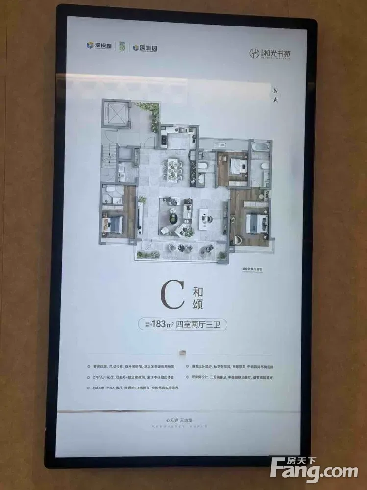 深圳园和光书苑183平米灵动大四居 标准通透 赠送面积大