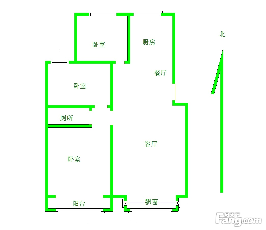 本房源户型图与照片和一致,南北通透,实用小三室