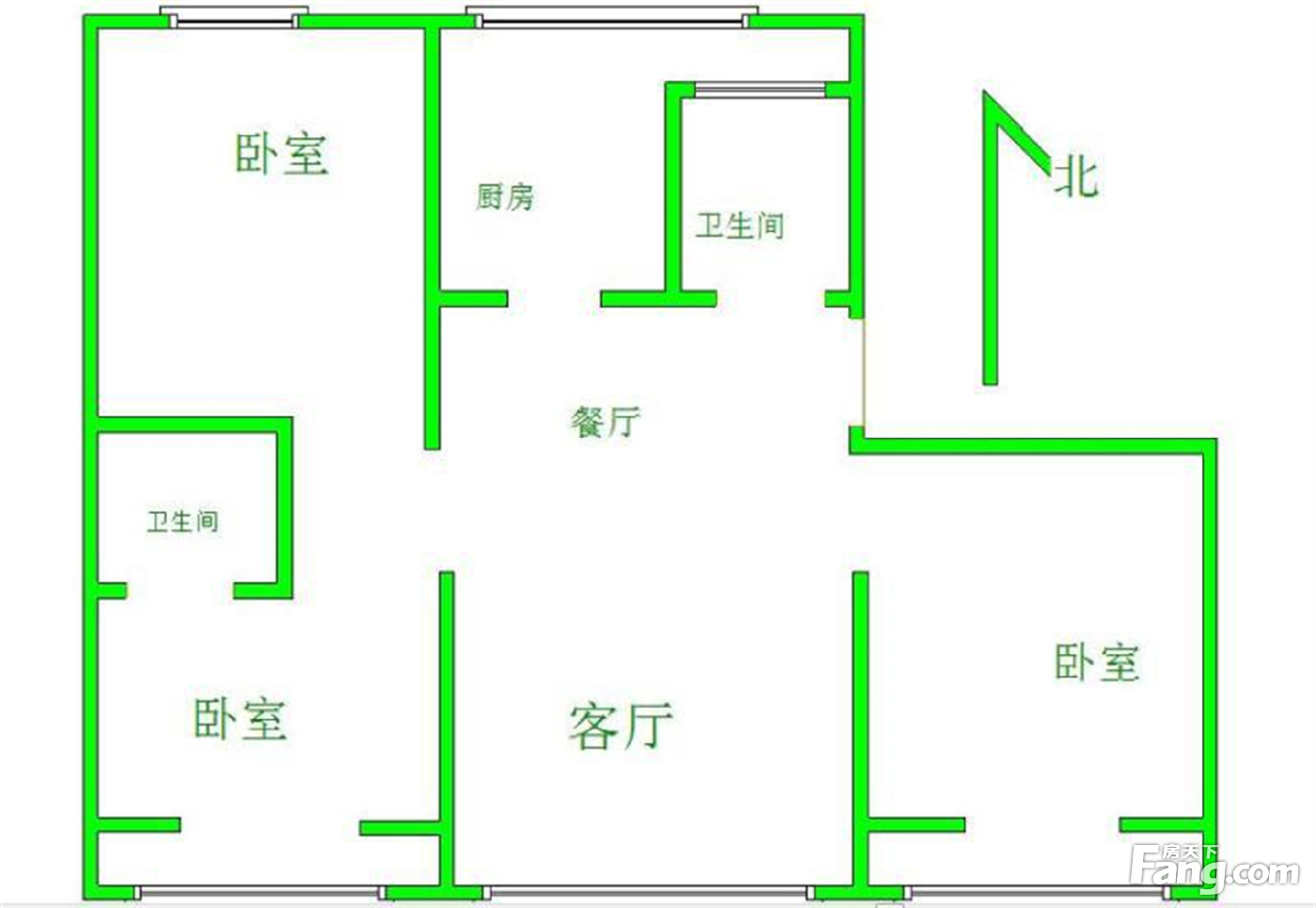 本房源户型图与照片和一致,南北通透,实用小三室