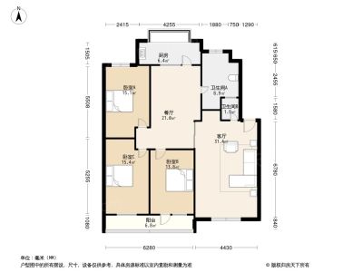 本房源户型图与照片和一致,南北通透,实用小三室