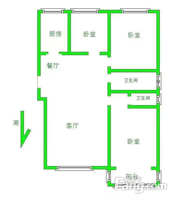 本房源户型图与照片和一致,南北通透,实用小三室
