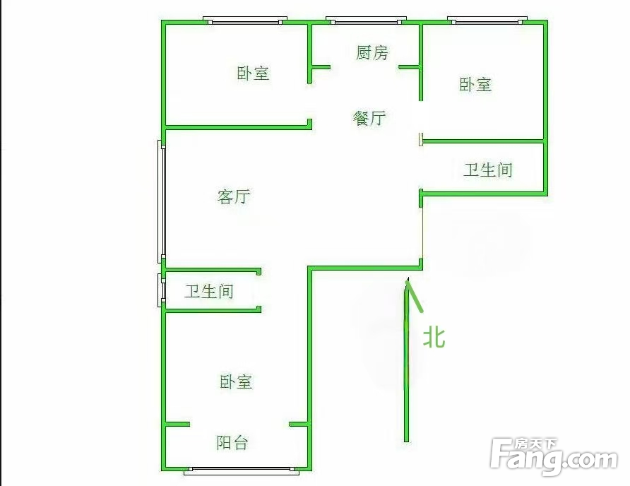 本房源户型图与照片和一致,南北通透,实用小三室