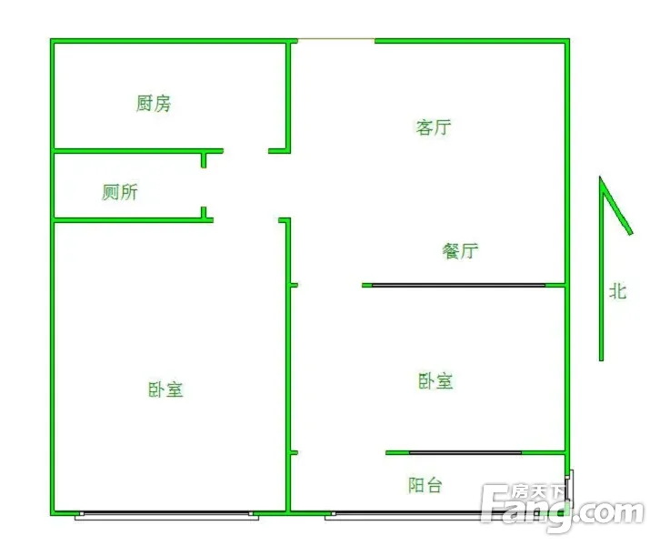 本房源户型图与照片和一致,南北通透,实用小三室
