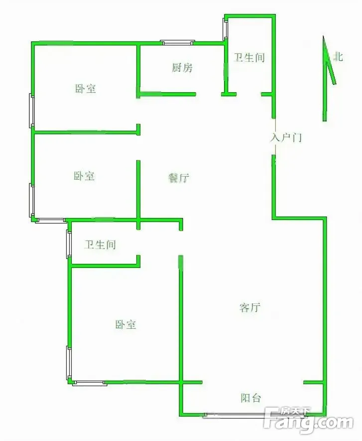 户型齐全,主打明卫,双卧朝南三居