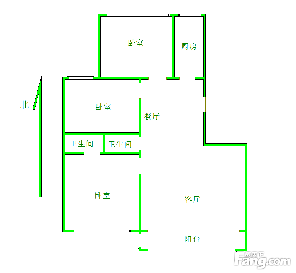 本房源户型图与照片和一致,南北通透,实用小三室