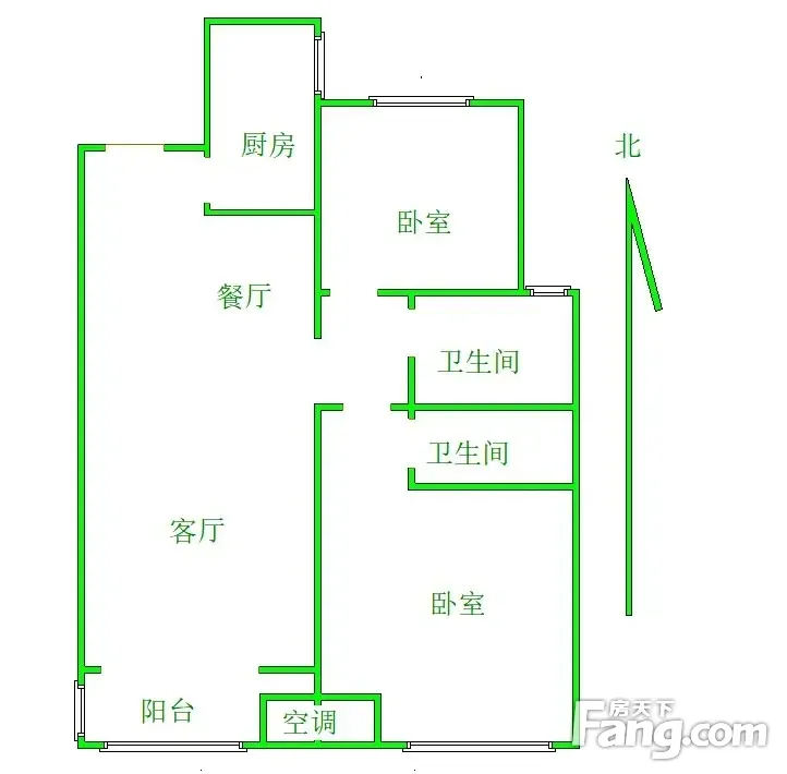 本房源户型图与照片和一致,南北通透,实用小三室