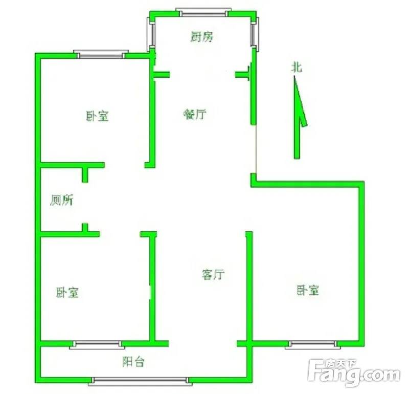 本房源户型图与照片和一致,南北通透,实用小三室