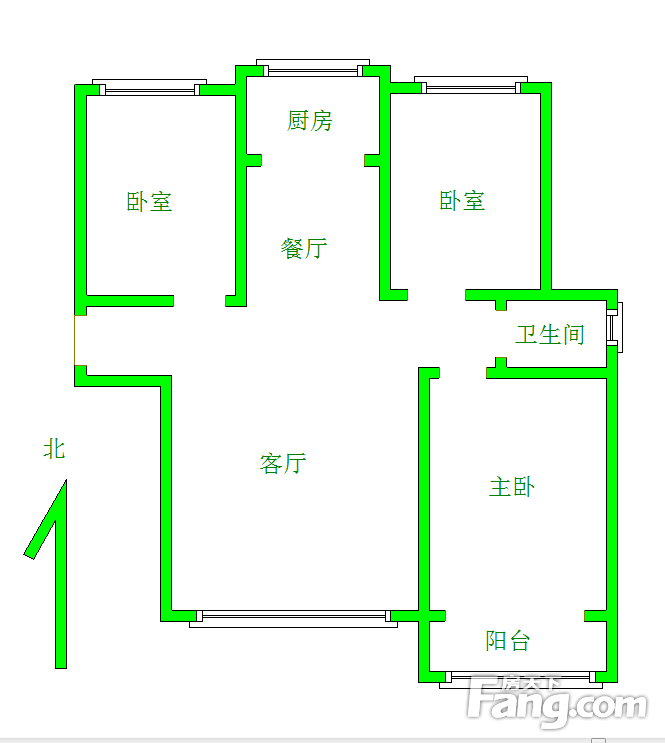 本房源户型图与照片和一致,南北通透,实用小三室