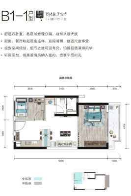 户型齐全,主打户型方正,动静分离一居