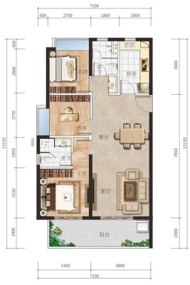 户型齐全,主打户型方正,动静分离二居
