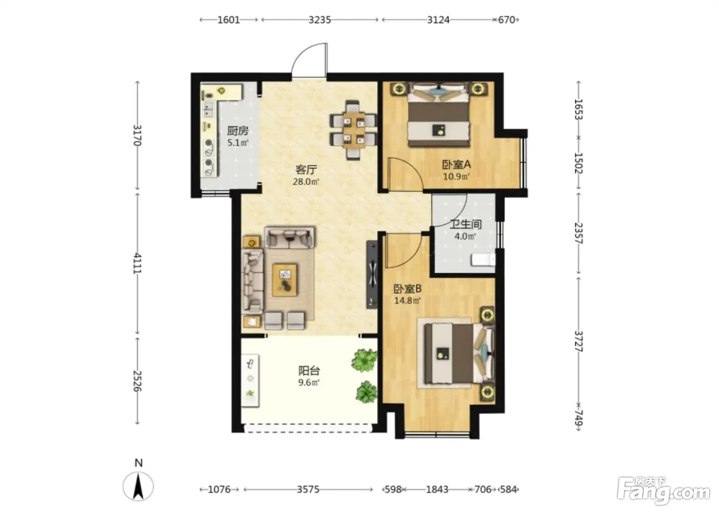 户型齐全,主打南北通透,飘窗二居