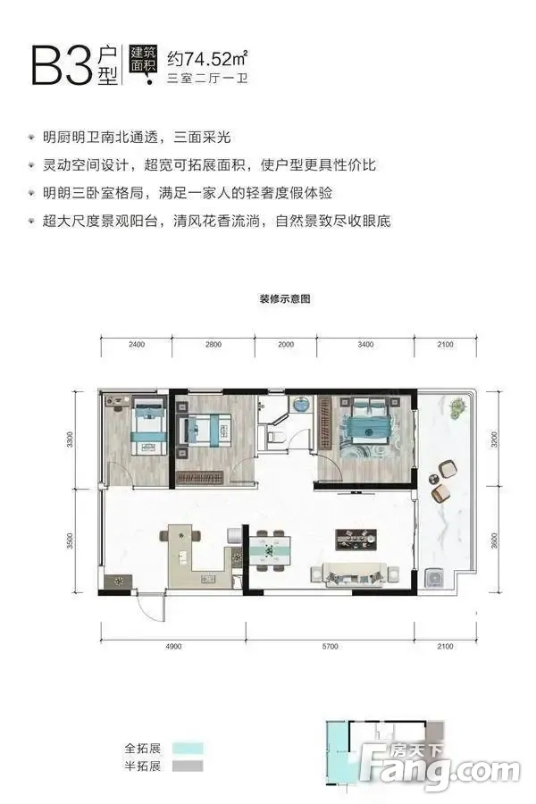 户型齐全,主打户型方正,动静分离一居