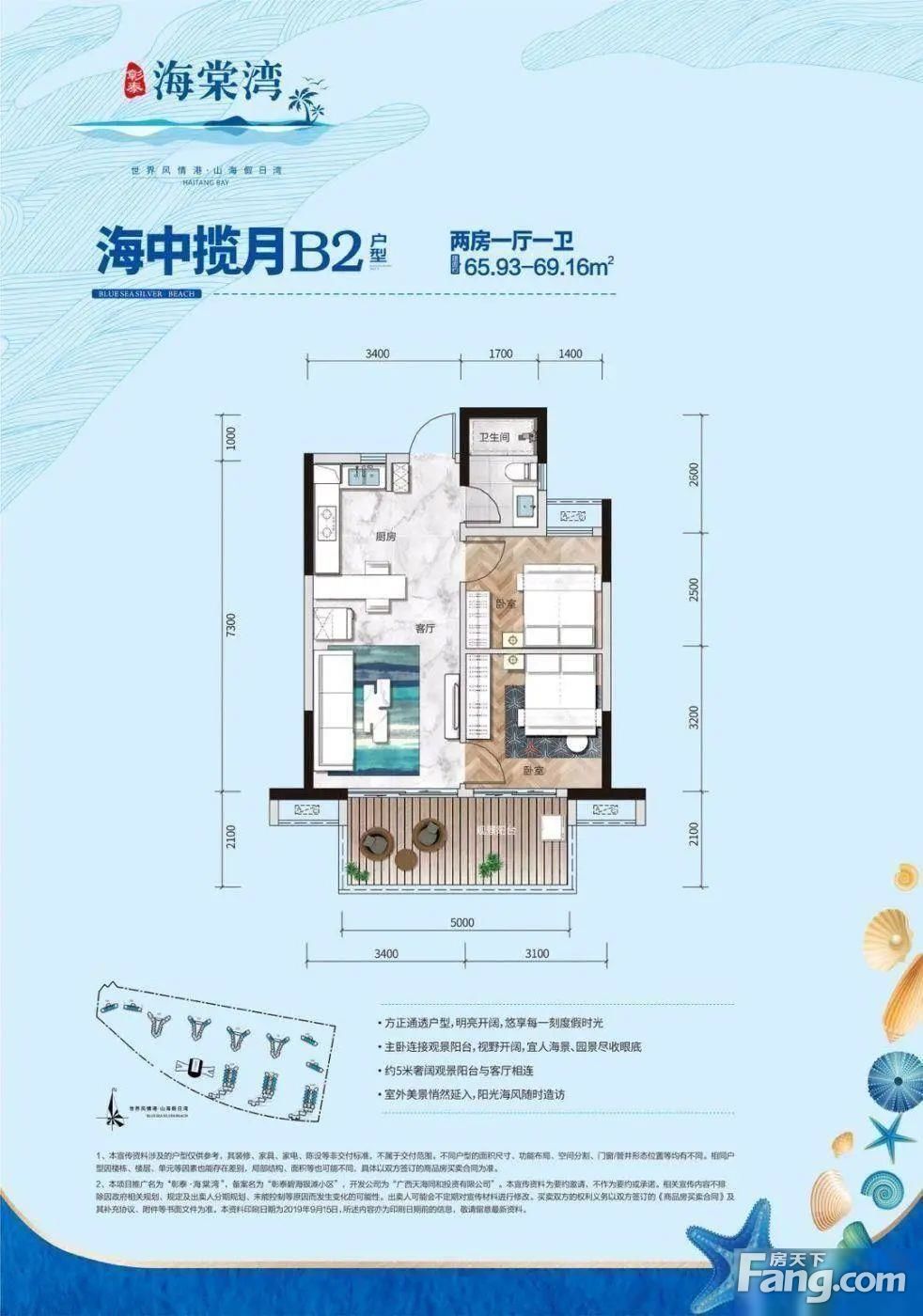 全新精装未入住!海棠湾一线海景房!66平精装两房!看山看海