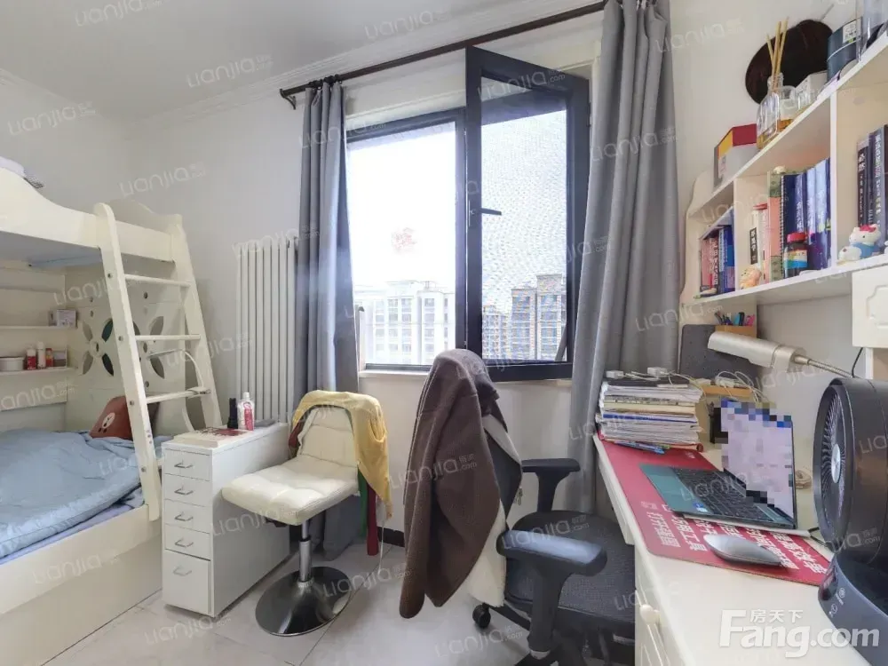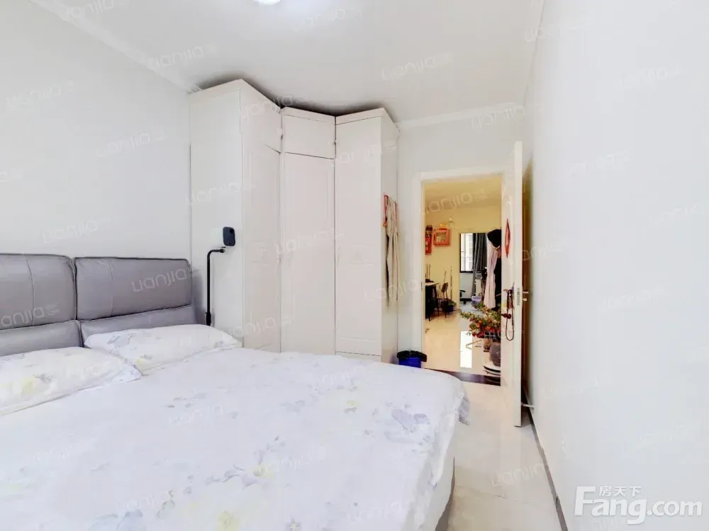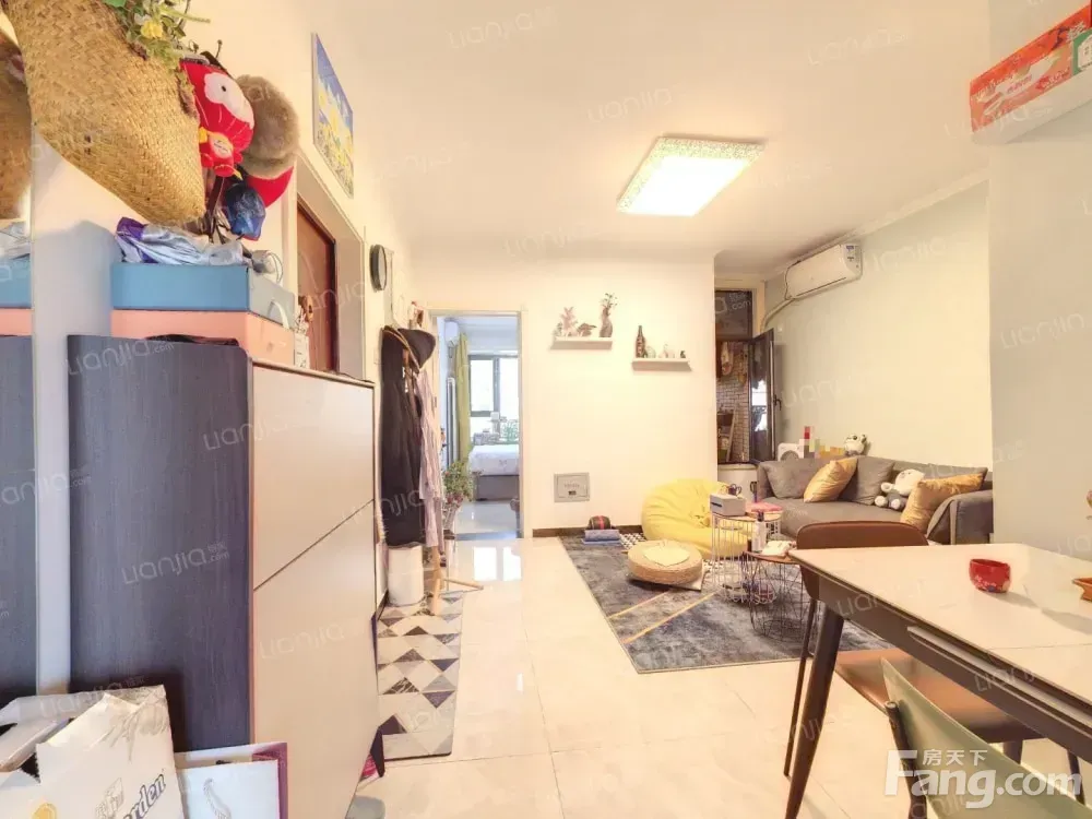 2015年次新房,楼龄新,低密度,有电梯,人车分流。 南北户型,边户,不临街,视野宽广。 业主自住,从未出租,自住标准装修,家电设施齐全,密码锁,可视门铃。房屋干净整洁,可拎包入住。 有独立餐厅。客厅地面有干净地毯、懒人沙发等,满足孩童爬行游玩或一家休闲娱乐需求。 客厅小阳台可满足衣物晾晒及养花种草之需。 主卧有飘窗、双人床、定制组合衣柜及梳妆台;次卧有高低床、书柜一体桌、定制衣柜;飘窗及书桌均能满足学习工作之需。 客厅及卧室有多个置物隔板,既美观大方又满足收纳需求。 无户口。